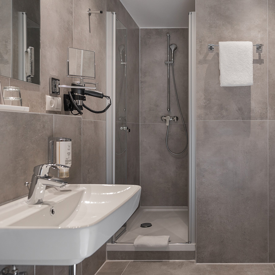 ausgestattet mit einem Doppelbett und Dusche/Bad/WC, Schreibtisch, Flachbildfernseher, Telefon, kostenfreies W-LAN, kostenfreier Safe, Haartrockner sowie Handtuchwärmer. Ausschließlich Nichtraucher.